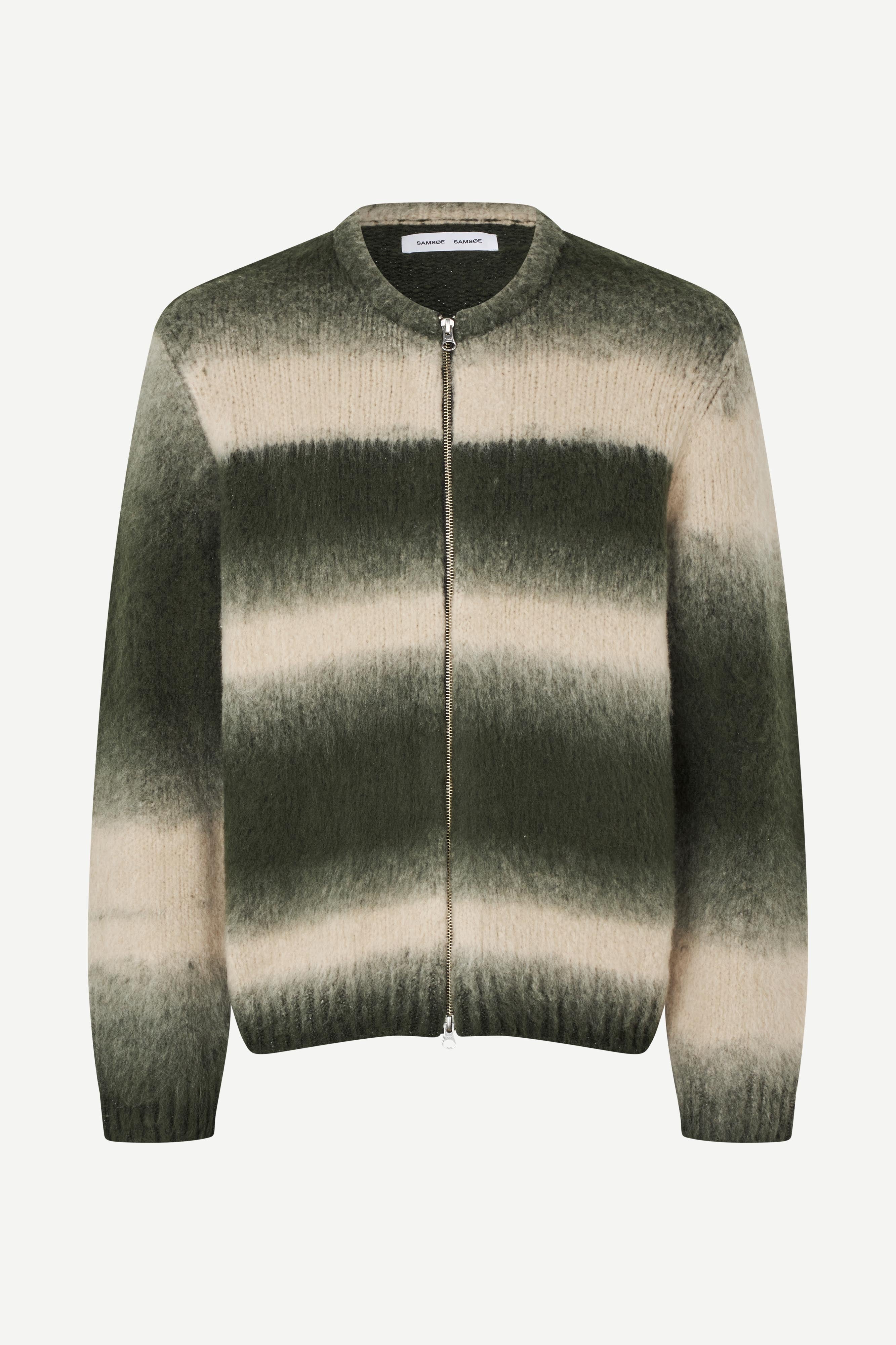 Gestreifte Strickjacke in normaler Passform. Zwei-Wege-Reißverschluss vorne. Gerippter Kragen, Bündchen und Saum. Rundhalsausschnitt. Angeraute Optik. Hauptmaterial aus Wollmischung.