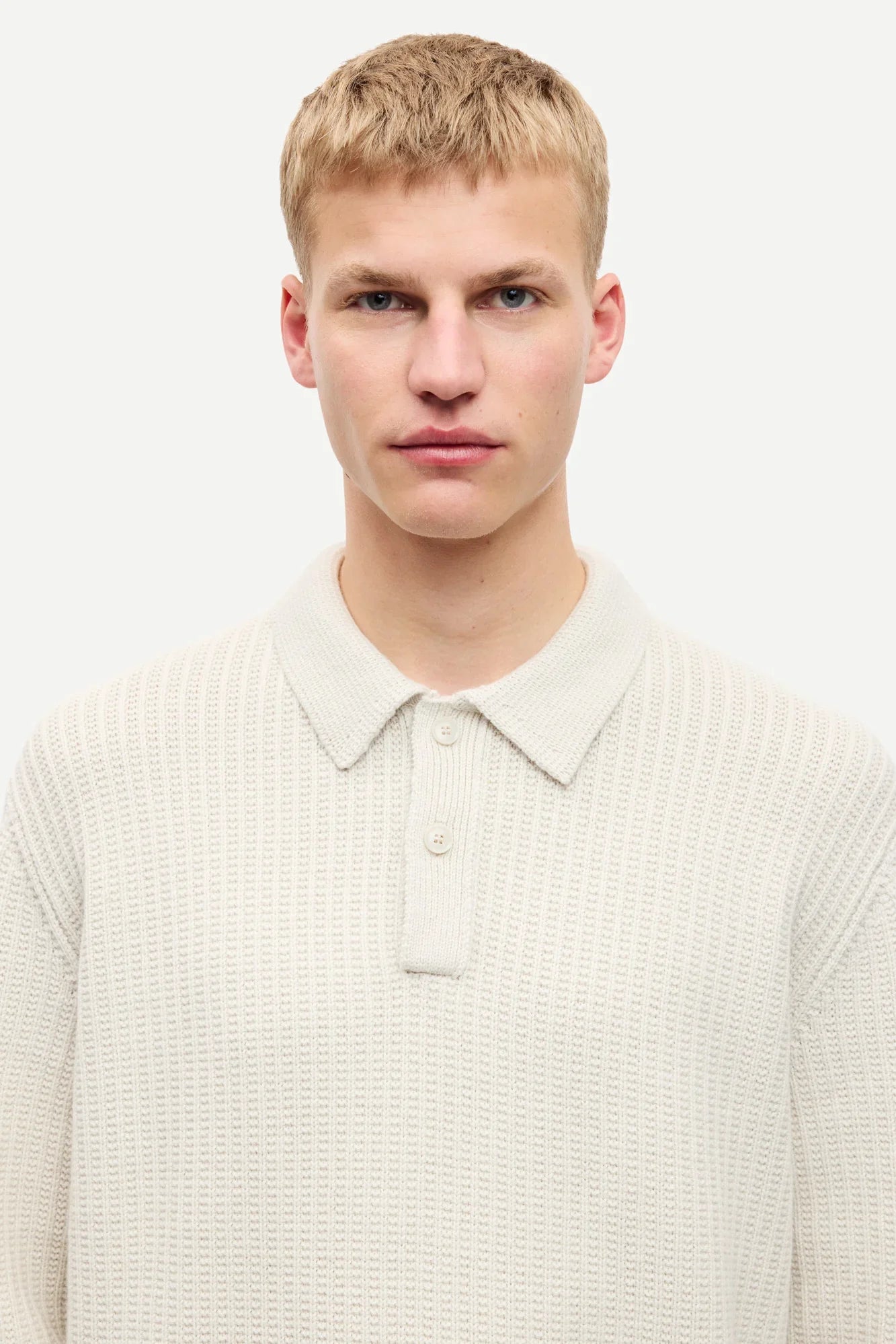 Langärmliges Poloshirt mit lockerer Passform und überschnittenen Schultern. Kurze Knopfleiste vorne. Bündchen und Saum im Rippenstrick. Hauptmaterial aus einer Mischung aus Wolle und Bio-Baumwolle. Dieses Produkt ist RWS-zertifiziert. Das RWS beschreibt und zertifiziert Tierschutz- und Landbewirtschaftungspraktiken bei der Wollfaserproduktion und verfolgt das zertifizierte Material vom Bauernhof bis zum Endprodukt.