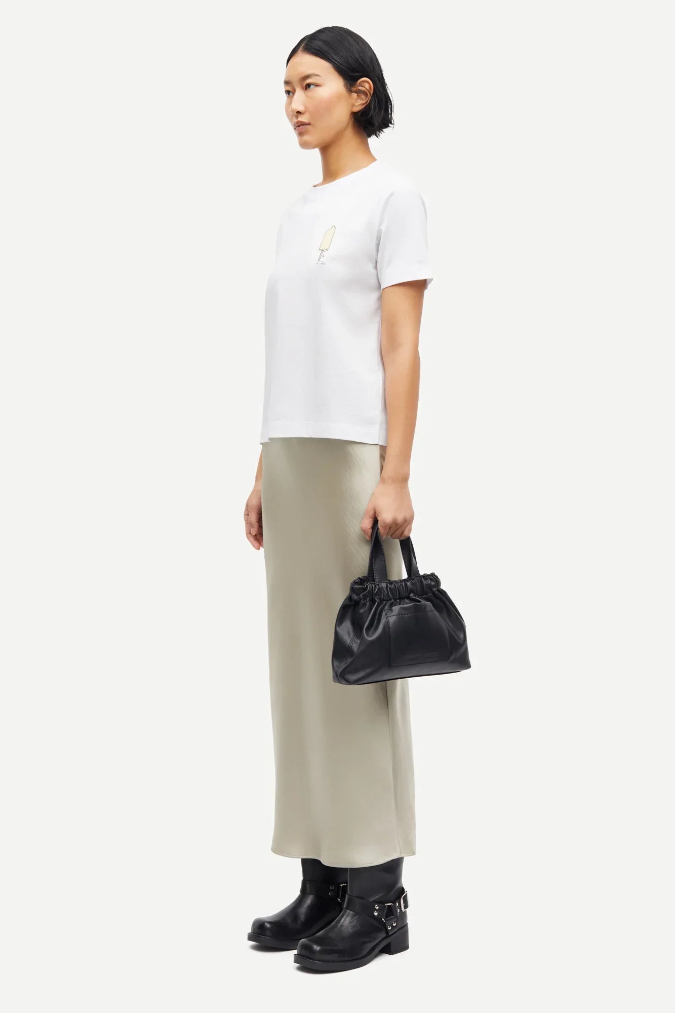 Satin-Maxirock mit schmaler Passform. Elastischer Bund. Hauptmaterial aus 100 % recyceltem Polyester. Dieses Produkt ist GRS-zertifiziert. Jede Stufe der Lieferkette erfüllt strenge soziale, ökologische und chemische Anforderungen.